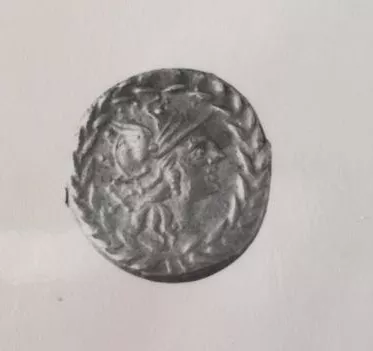 Al reverso, número circundado por letras.