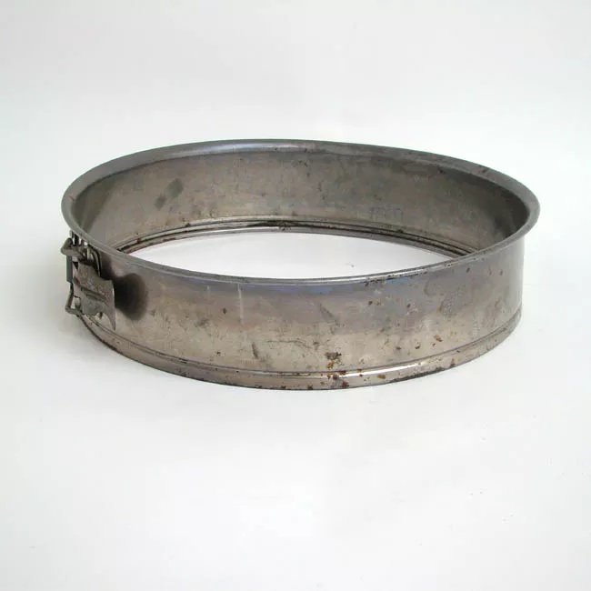 Molde de cocina circular, metálico. Las paredes son lisas y de altura...