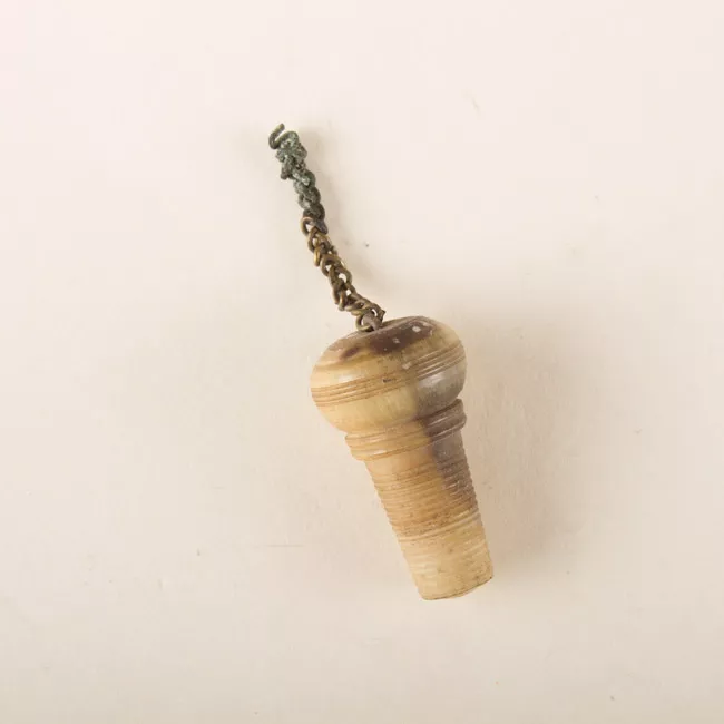 Compuesto por un cuerpo circular con ocho puntas remachado a una pieza curva. Fabricado en hierro de color marrón y grisáceo.