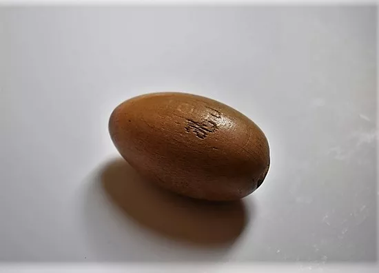 Objeto utilitario elaborado en madera de cuerpo ovoide con acanalado c...