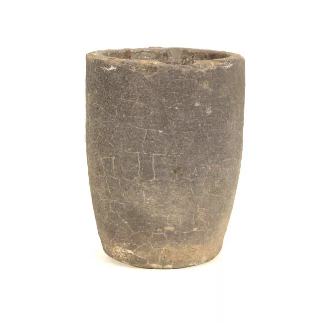 Objeto utilizado para lijar. Se compone de un mango tubular con leve acinturamiento y cruzado por tres anillos, que es de madera marrón. A el se adosa un anillo marrón en el que se inserta una pieza de metal en forma tubular, cuya superficie posee hendiduras rectas y regulares.