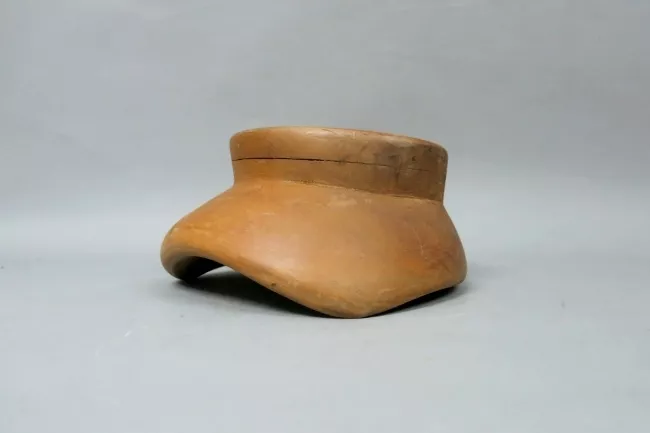 Objeto para sostener sombreros, de forma cilíndrica y de madera clara....