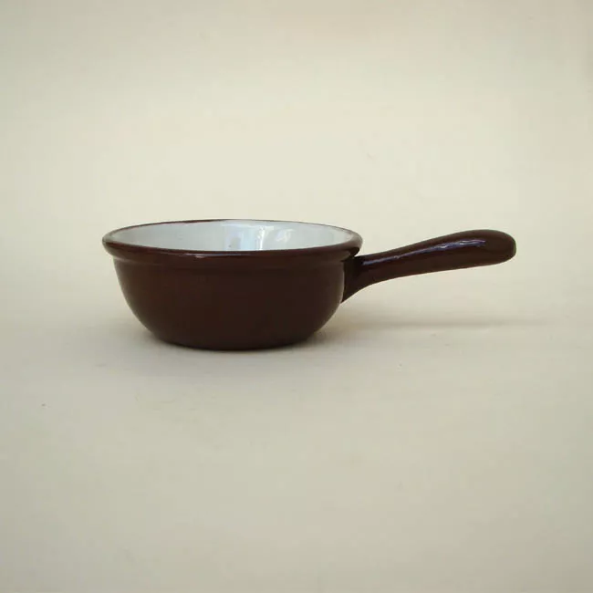Recipiente cerámico de forma circular, cóncavo, color café por fuera y...