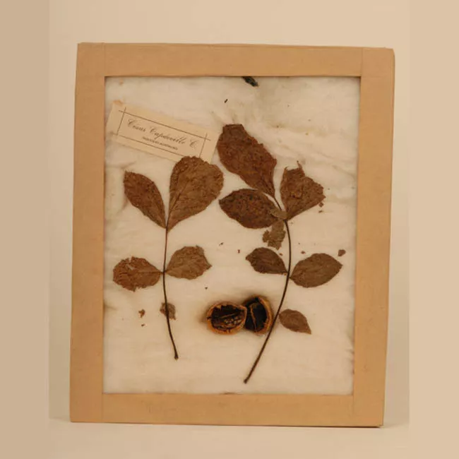 Caja rectangular dentro de la cual hay muestras de hojas con tallos y ...