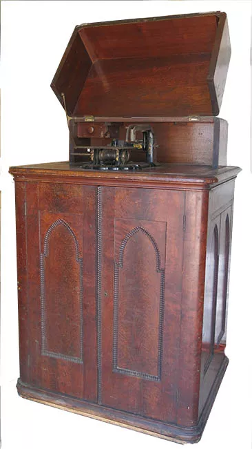 Mueble de madera, de forma rectangular, que presenta una base de orien...