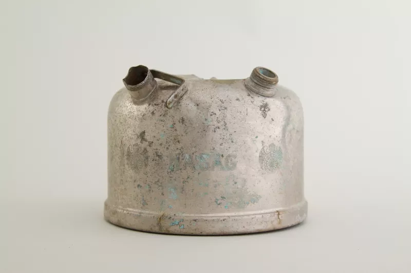 Objeto metálico cilíndrico de base plana. Extremo superior redondeado....