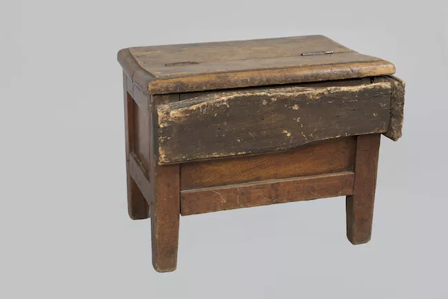 Objeto de metal pintado en forma de cono truncado, que en su interior aloja una rosa náutica del tipo tarjeta, que gira libremente por su centro sobre una aguja o chapitel.
