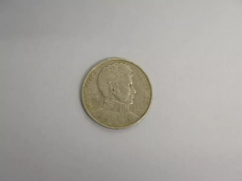Billete Provisional de 1943 de la república de Chile de Un Peso. Anverso: Presenta dos colores, anaranjado de fondo, enmarcado por azul y textos en azul. Al centro y de fondo, en color naranja escudo del banco central de Chile con imagen de un ave (cóndor). En orilla superior, texto blanco sobre fondo azul, indica BILLETE PROVISIONAL y en orilla inferior, entre paréntesis indica (UN DÉCIMO DE CÓNDOR). Al centro a la derecha, indica en número: 1; a la izquierda en letras: UN PESO. Bajo esto: convertible en oro conforme a la ley. Fecha: 3 de MARZO de 1943. Firmas del presidente y gerente general. En cada esquina del rectángulo indica en número: 1