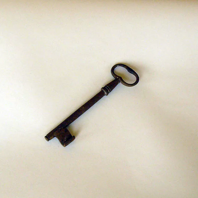 Objeto elaborado en metal. Pieza semi circular con protuberancia centr...