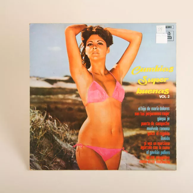 Disco de vinilo con etiqueta central y circular de color rojo y naranj...