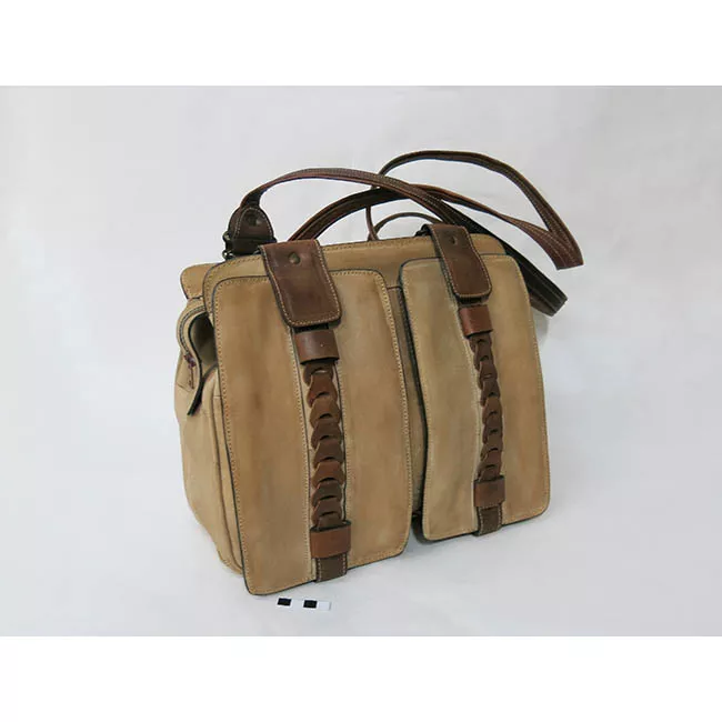 Objeto de uso personal, bolso confeccionado en cuero de color marrón c...