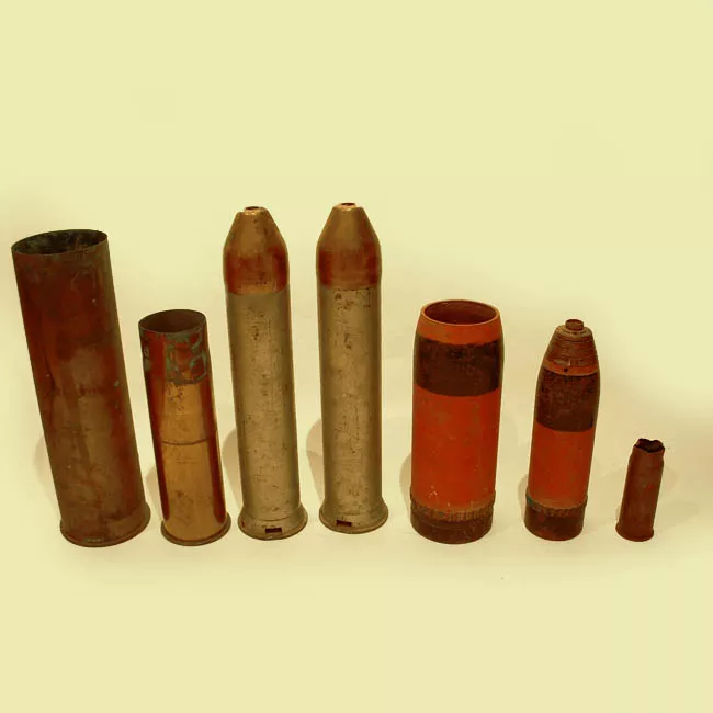 Parte componente de proyectil usado en artillería. Conjunto de siete o...