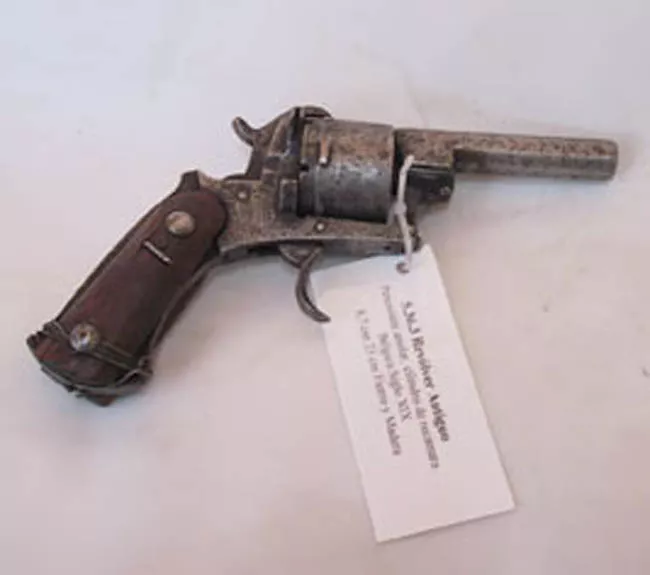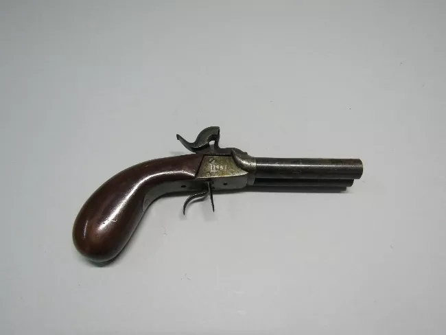 Pistola de percusión de dos cañones horizontales pavonados y cachas de...