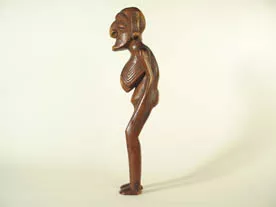 Adorno de uso personal. Objeto de cuerpo oblongo de sección plana elaborado en metal. El objeto se compone por una lámina en forma de cuarto menguante, desde cuyo centro surge un cuerpo de sección cilíndrica la cual termina en una punta aguzada. En la zona de unión de ambas partes la lamina presenta una perforación circular. Ambas caras son lisas y sin decoración.