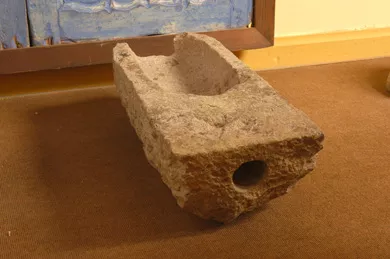 Recipiente de cuerpo abierto y perfil simple. Cuerpo cilíndrico sección elipsiode, de paredes rectas con orificio central y base plana elaborado en piedra pulida. Presenta decoración incisa en líneas horizontales y verticales paralelas. Se cree que pudo ser utilizado como instrumento musical.