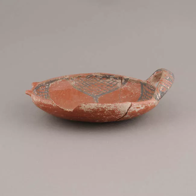 Contenedor cerámico de cuerpo globular restringido, con boca pequeña y...