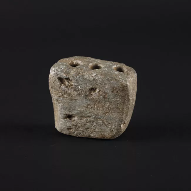 Instrumento musical de percusión, formado por una calabaza que tiene inserto un mango tubular de madera. La calabaza tiene un lámina de metal como parche claveteada con tachuelas, ésta presenta decoración incisa fitomorfa. En su interior contiene elementos (semilas o piedrecitas que se golpean entre sí cuando ésta se agita. Color café oscuro.