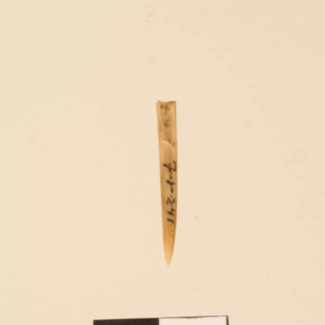 Fragmento de aguja de hueso consistente en la punta del objeto. Se obs...