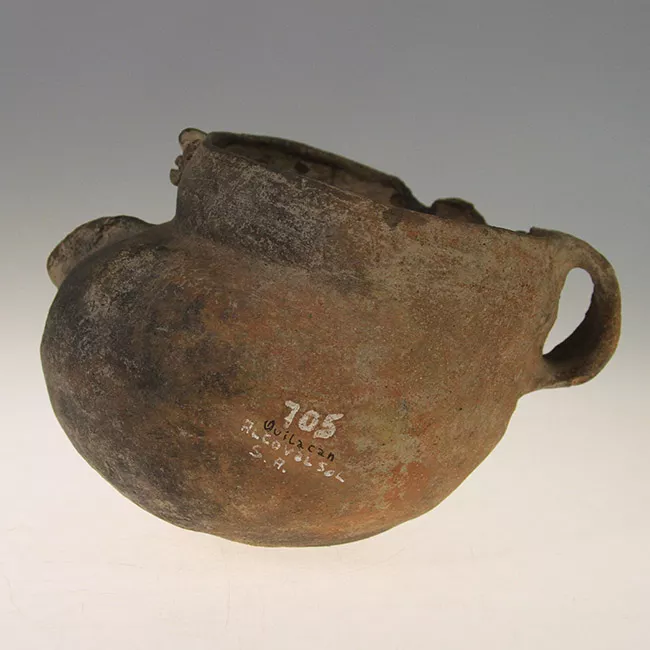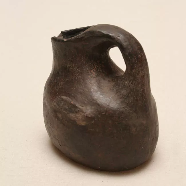 Vasija asimétrica, restringida con cuello, de perfil compuesto. El bor...
