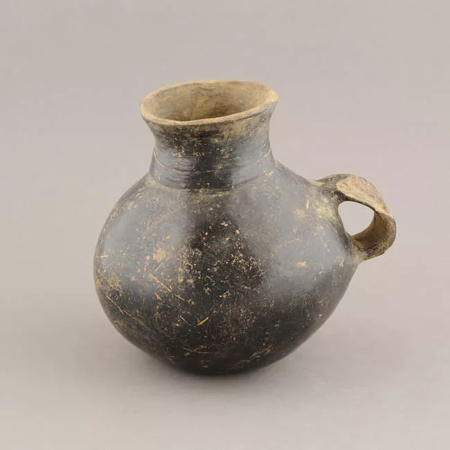 Pieza de forma triangular con base recta. Color crema. Presenta retoqu...