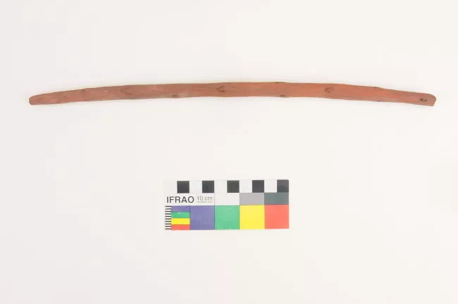 Objeto lítico de forma cilíndrica regular con bordes redondeados y per...
