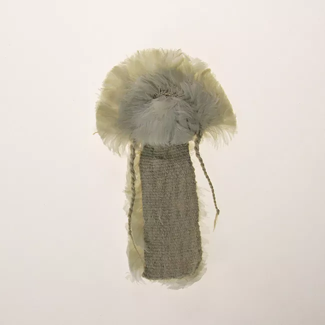 Pieza competa, de forma circular y de color marrón claro. Ambas caras están pulidas y son muy suaves al tacto, tiene pequeñas estrías superficiales. El borde está aguzado con una huella de molde o costura en algunos sectores. Al centro tienen un agujero cilíndrico de diámetro regular. Una de las caras presenta algunas líneas incisas. Es de hueso.
