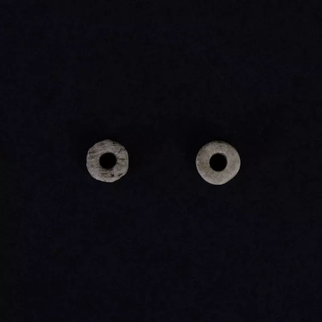 Pieza de forma tubular con una leve curva central, y de color marrón claro. La superficie está pulida. Pieza fabricada de hueso.
