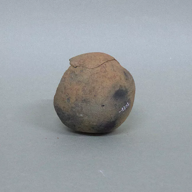 Adorno de uso personal que se lleva como parte de un collar. Objeto cónico con perforación en el sector central. Se encuentra fabricado en piedra tallada y pulida de color marrón rojizo.