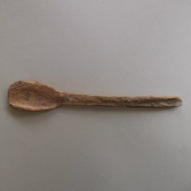Instrumento lítico utilizado para moler diferentes sustancias. De forma subelíptica, la superficie activa (anverso) presenta una concavidad muy profunda producto de la acción de molienda, probablemente de elementos abrasivos..