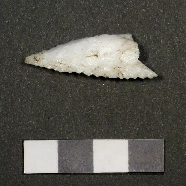Instrumento lítico usado como cabeza de proyectil arrojadizo. Tiene fo...