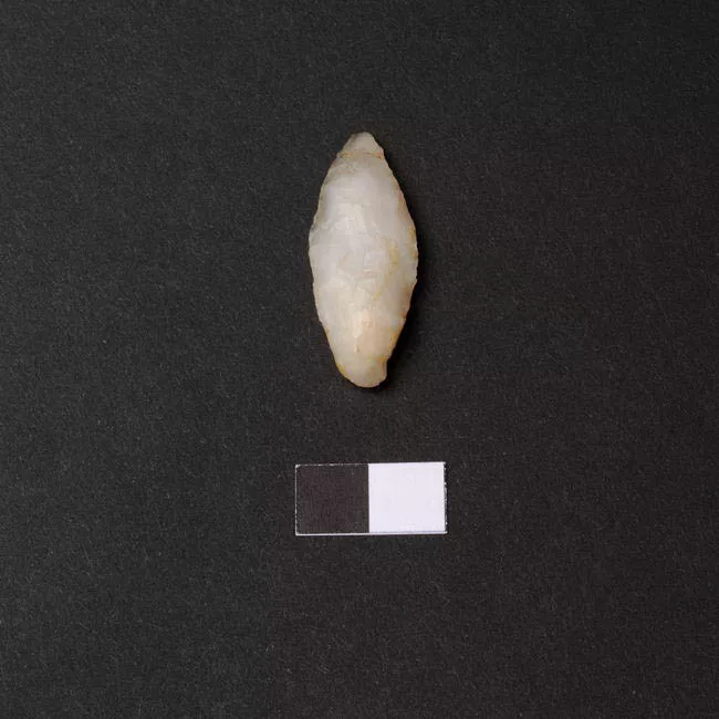 Objeto de uso doméstico de talla bifacial, elaborado en sílice opaco d...