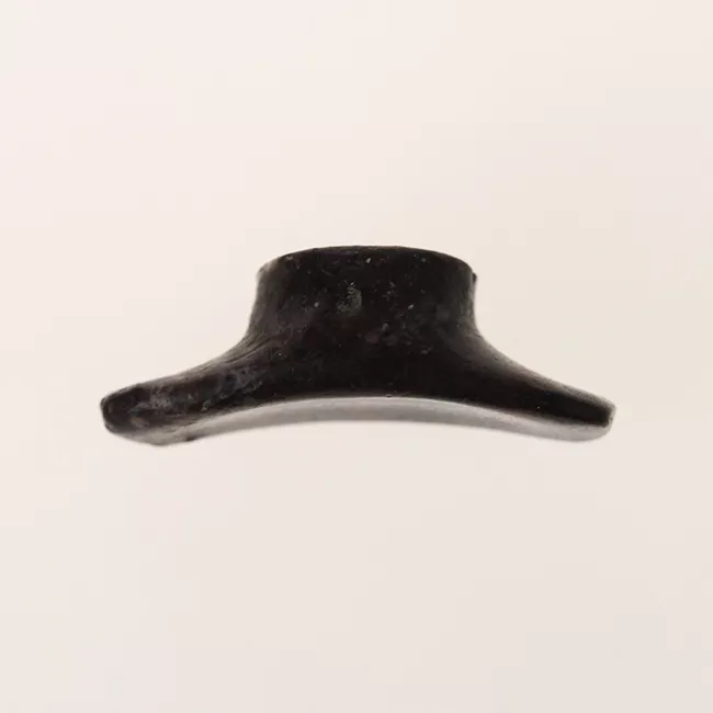 Adorno de uso personal femenino para las orejas que se usa en pares. De forma cilíndrica plana compuesto por un disco y un arco inserto por medio de una perforación remachada. El disco lleva decoración incisa lineal, punteada en todo el borde. Color plateado de aspecto brillante.