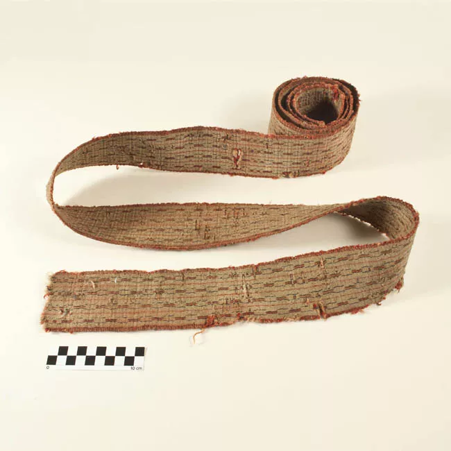 Instrumento textil. Se usa para apretar el tejido en el telar. De forma oblonga elaborado en madera tallada. Ambos extremos apuntados. Superficie lisa color café sin decoración.