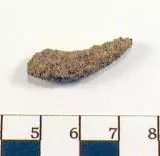 Objeto alargado, con forma cilíndrica y sección delgada. Presenta en uno de sus extremos una terminación irregular y fracturada, mientras que en el extremo opuesto se observan tres perforaciones circulares alineadas de manera longitudinal. La superficie muestra textura lisa con algunas irregularidades propias del material.