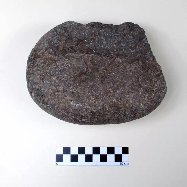 Objeto lítico de forma prismática, correspondiente al borde activo de un toki de basalto. La pieza presenta un borde terminado en forma de bisel; el extremo paralelo termina en una fractura abrupta.