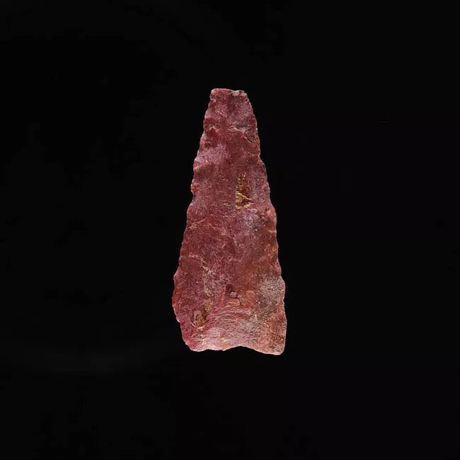 Objeto de forma triangular alargada de base escotada. Talla bifacial c...