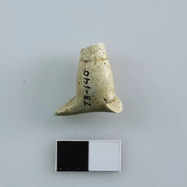Fragmento de aguja de hueso consistente en la punta del objeto. Se observan bordes convergentes en una punta redondeada.