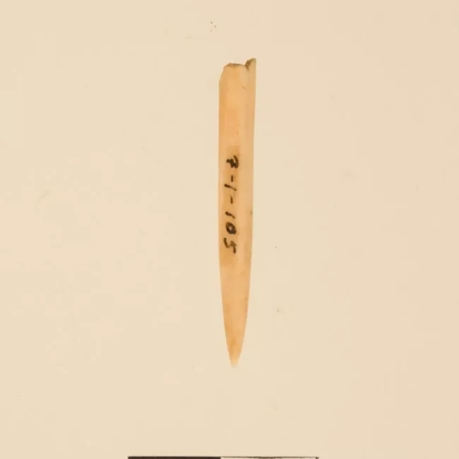Fragmento de aguja de hueso consistente en la punta del objeto. Se obs...