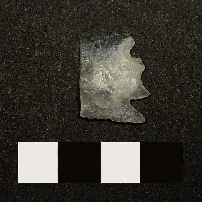 Instrumento lítico usado como cabeza de proyectil arrojadizo. Tiene fo...