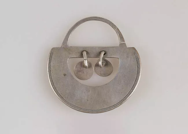 Pieza de forma cupular y de color beige en el exterior y grisáceo en e...