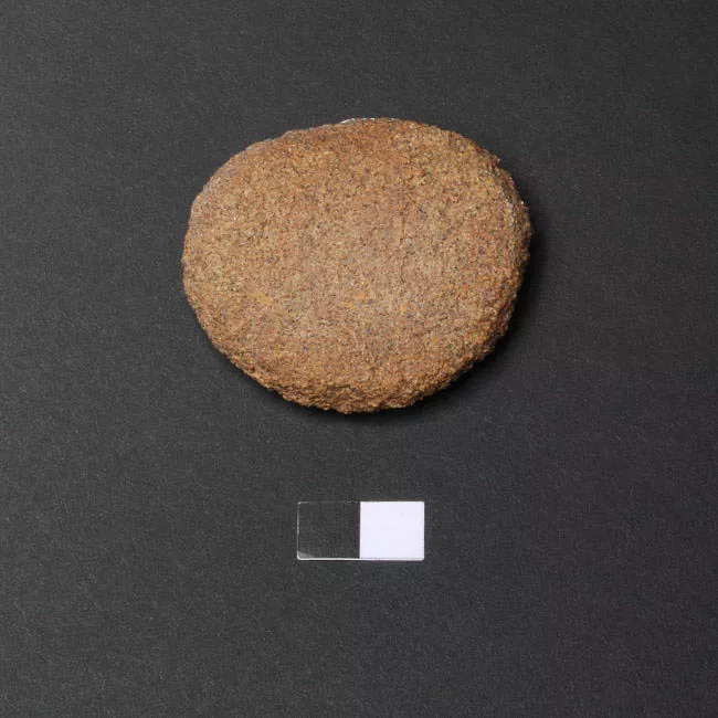 Utensilio de piedra de uso doméstico para moler granos. De forma ovalada, presenta una curvatura en la superficie.