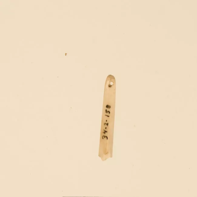 Fragmento de aguja de hueso correspondiente al extremo por donde se pa...