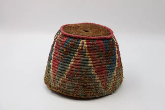 Ornamento de cabeza de forma troncocónica. Tiene una tapa circular con...