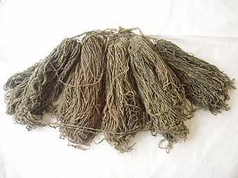 Pieza metálica al extremo superior presenta una forma circular, de borde ondulado y calado. Tiene decoración en relieve con figura central rodeado de elementos vegetales y se prolonga en un vástago agudo.