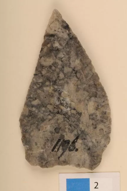 Instrumento lítico usado como cabeza de proyectil arrojadizo. Tiene fo...