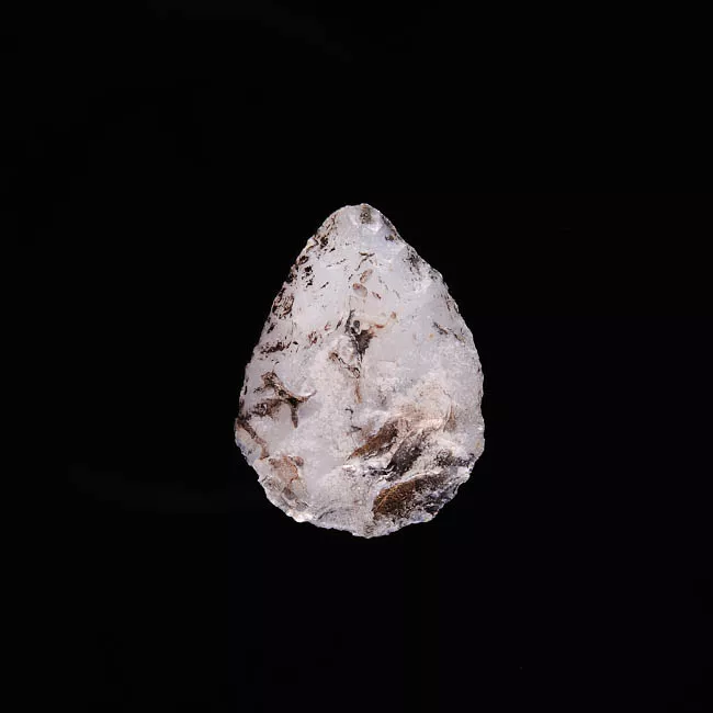 Objeto de forma triangular redondeada con base curva. Talla bifacial c...