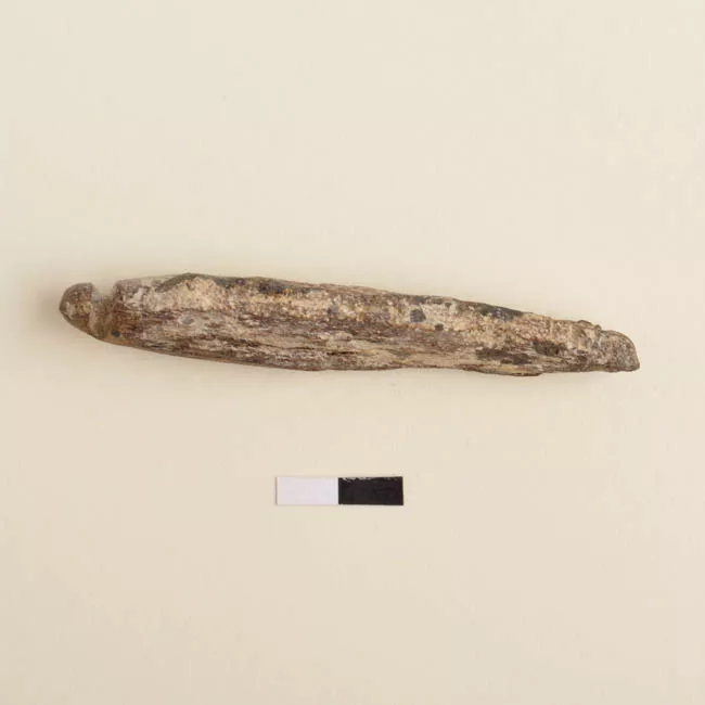 Objeto de uso ritual. Se trata de un tambor con una base de madera que va cubierta por una superficie de cuero pintada con lineas rojos de forma que divide el espacio en 4 puntos.