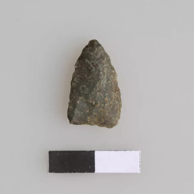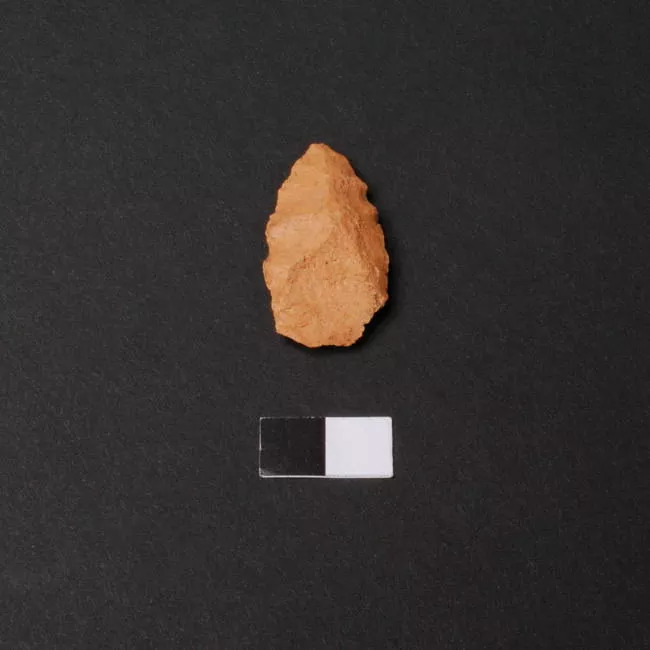 Objeto de uso doméstico de talla bifacial, elaborado en sílice opaco d...