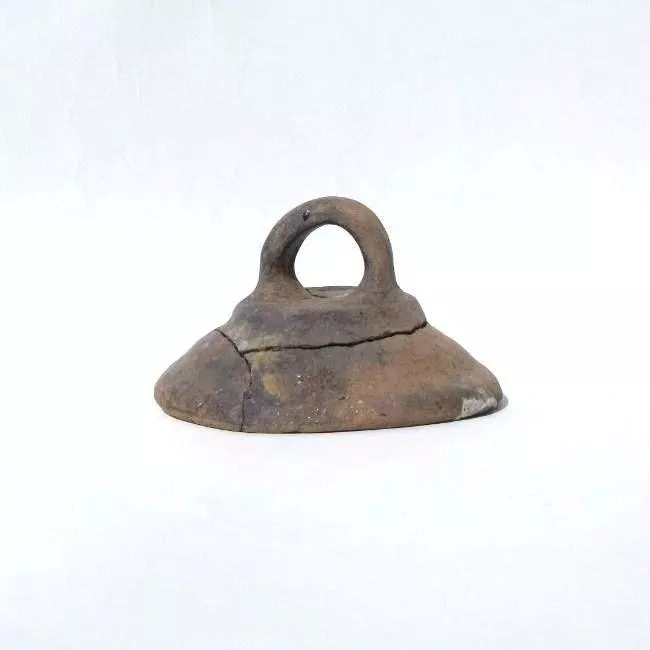 Instrumento lítico expeditivo. Tiene forma lanceolada y borde activo afilado. Está elaborado en piedra tallada de color marrón claro con vetas oscuras.