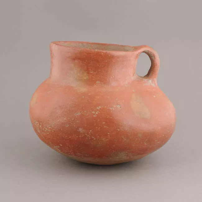 Vasija asimétrica, restringida con cuello, de perfil compuesto. El bor...